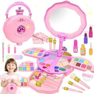 色が付けるメイクおもちゃ:子どもに向けてのメイクアップセットです。水性で肌に優しい素材を使用し、あんしんして遊ぶことができます!カラフルなアイシャドー・チーク・リップ・ネイルなどの小物がセットになっているので、メイクに