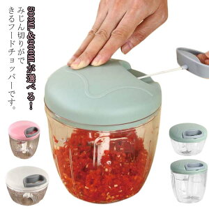 500ML&900MLが選べる!みじん切りができるフードチョッパーです。ひっぱる回数次第で、細かさも調節できます。刃はステンレスなので錆びにくく清潔にカット可能です。ニンニク、玉ねぎ、唐辛子などの野菜からピーナッツ、離乳食、お肉ま