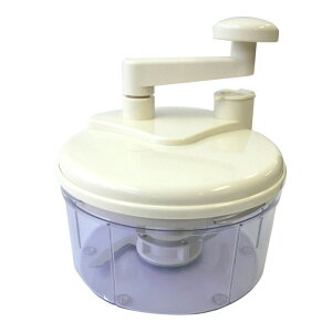 ハンドルを回すだけで、楽に野菜のみじん切りができます。 ハンドルをフタに収納できコンパクト。 容器底に滑り止め用シリコンゴム付 ■材 質:容器=AS樹脂 蓋・裏蓋・ハンドル=ABS樹脂 ギア・シャフト=ポリアセター