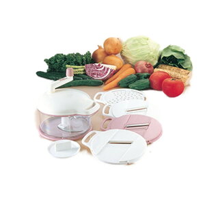 細かな野菜のカットをスピーディーに。手間のかかるみじん切りや千切りを簡単に。サイズみじん切り器:約210×180×180mm、おろし:約195×167×12mm、せん切り・つま切り・平切り:約195×167×12mm...