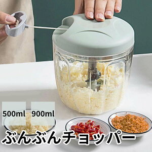 【引っ張るだけの手軽な手動式】ハンドルを引くだけの簡単調理!電源不要で場所を選ばずとっても便利なハンディチョッパー。引っ張るだけなので、お子様も楽しくお手伝い。 【大容量・滑り止め】500ml、900MLの大容量のカップで、たくさんの...