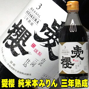 愛桜 純米 三河 本みりん 500ml (三年熟成・古式三河仕込み・国産もち米使用) “三年熟成が醸し出す深い旨味と琥珀の輝き。 古式三河仕込みの極上純米本みりん。” 愛知県三河地方の伝統製法を守り抜く蔵元が...