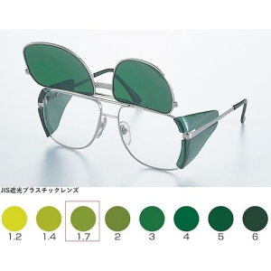 テンプル色:シルバー・フレーム色:シルバー・幅(mm):141・高さ(mm):52・長さ(mm):158・遮光度:#3・適合規格:JIS・UVカット:○・ノーズパッド:○・メタルフレームW型遮光めがね・外レンズ:JIS遮光プラスチック...