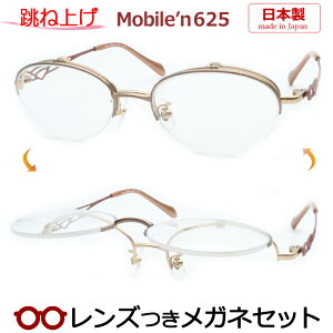 レンズつき国産跳ね上げ式モバイルン 【mobilen】メガネセット625 サイズ 49□17 135 たて36×よこ125 女性向けレディースデザイン (女性標準サイズ相当) カラー 跳ね上げ:ブラウン フロント:ゴールド...