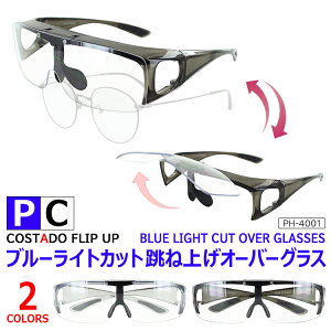 【ブルーライトカット 跳ね上げ オーバーグラス】PC-4001◇ブルーライト約25%カット◇オーバーグラスそのまま掛けることも、お手持ちのメガネの上から掛けることもできます。※幅 約140mm×高さ 40mm...