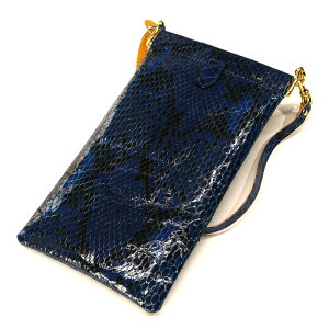 ダイヤモンドパイソン(ヘビ革)を使った工房オリジナルの縦型マルチケース。 メガネケース、スマホケース等にご利用頂ける深さのあるタイプ マチなしの為スッキリとコンパクトご利用いただけます。 片手でまたは、両面についている同革