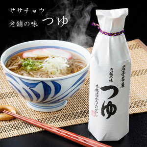 かつおぶしをたっぷりと贅沢に使い、職人が手作業で手間をかけて取れたダシと、長期熟成させた醤油とブレンドした4倍つゆササチョウ「老舗の味 つゆ 500ml 」です。つけ汁には4〜5倍に、かけ汁には8〜10倍に薄めてご使用下さい。麺類のお