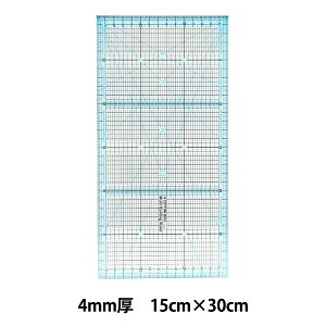 ものさし 『マルチキルティングルーラー 15cm×30cm』 金亀糸業 ハンド・ミシンどちらのピースにも使用できる! ミシンキルト、ハンドキルト、ソーイング、ピースカッティングに便利! 濃色の布にもよく見えるブルーのライン入り...