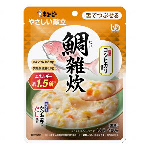 ・細かな具材を舌でつぶせるくらいにやわらかく調理し、とろみをつけて食べやすく仕上げています。 ・鯛だしと焼津産かつお節のだしをベースに、鯛や魚介のうま味を引き立てました。 ・一般的なおかゆの約1.5倍のエネルギーがとれる仕