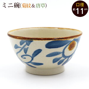 菊紋&唐草模様のおしゃれなミニ碗(ご飯茶碗)。 ギフト・ご贈答用にもオススメです。 朝日陶器(中城窯)のやちむん(焼き物)です。 ■サイズ:口径 約12cm、高さ 約6cm ■生産国:日本(沖縄) ■...