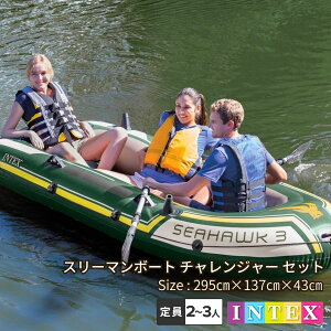 INTEX社製のボートです。安心の空気室3個設計。ボートの先端につかまり用のロープ付。オール2本、ポンプ、修理用パッチ付。360kgまでの方が乗れます。(乗員例:大人2人、子供3人)