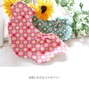 優しくて可愛い形にお花を乗せて。。。 ギフトにも素敵な可愛らしい柄のよだれかけです 表は さらっとしたコットン 中は Wガーゼ 裏は コットンニット 表・中・裏ともにお肌に優しいコットン100の素材を使用...