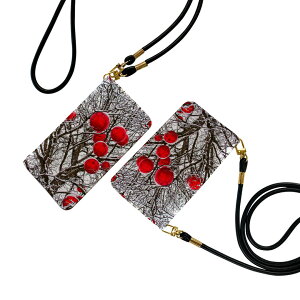 ショルダー付き手帳型スマホケース・シームレスな全面デザイン(内側は落ち着いたオフホワイト)・外側は高品質の人工革を使用・内側にはスマホを装着するケースが付属・機種専用のカメラホール仕様でケースを装着したまま