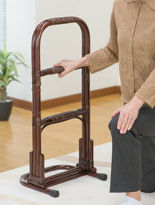 膝や腰への負担を軽減し、つらい立ち上がりをサポートするラタンの手すり。 ●サイズ/約幅35×奥行30×高さ81cm ●重さ/約1.9kg ●素材/天然籐、天然木(マホガニー) ●備考/お客様組立式 ●製造国/インドネシア製(企画:日本)