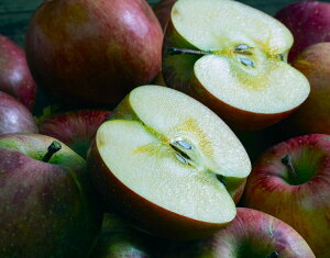 「国光」と「デリシャス」の交配品種です。 果実の大きさは300g前後。 多汁で甘味が強く。蜜も入りやすい貯蔵性に優れたりんごです。 「サンふじ」は「ふじ」を無袋栽培したもので、見た目は荒削りですが、太陽の光を充分に浴びて育つため...