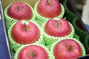 太陽の恵みをいっぱい浴びた酸味と甘みのバランスに優れたジューシーりんご「サンふじ」と果汁が多く強い。
