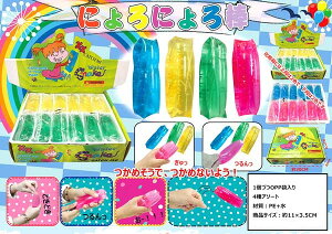 希望小売価格250円X2個セット (税別) つかめそうでつかめない、不思議な棒状のスティックです。 手で握って、つかんで。。。手の中から逃げ出す、不思議な不思議なにょろにょろ棒。 長さ約11cm つるん、つるりん!とした感触を楽しんで