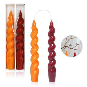 手作りのテーパーキャンドル バイカラー スパイラルキャンドル ろうそく芯がつながっている 蝋燭 無香料 ディナーキャンドル 結婚祝いアニバーサリークリスマスキャンドル 2個入り (#2 red + orange)...