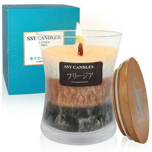 FCMSHAMD アロマキャンドル L ジャーキャンドル フリージアの香り アロマ ろうそく ロウソク 木の芯 ガラスの瓶 3層のカラー フレグランス ギフト パチパチ音 (black-brown-white)...