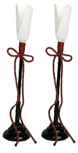 雛人形の小道具/小さなサイズの燭台です。 現在ご所有の雛飾りの交換や追加にいかがですか? 初節句、お祝い、海外土産、プレゼントに最適です。 赤色は魔除け、生命力、活力など昔から縁起の良い色です。 黒塗り仕上げ、赤色のリボンがアクセント...