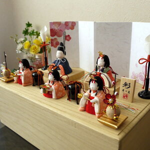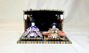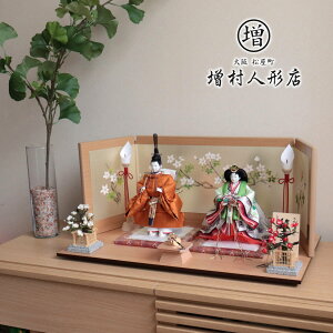 おだいり様とおひな様の衣裳を段織金襴で仕立て上げました。 木目調のモダンなデザインの屏風に花をあしらい可愛らしさを演出しています。 間口(幅)45cmとコンパクトかつ、台にエッジを活かしたデザインがシャープな印象を演出しています。 お...