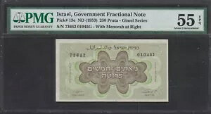 ISRAEL ND 1953 250 PRUTA P#13e .WITH MENORAH AT RIGHT .PMG 55 EPQ商品について紙幣の種類1953 年国 イスラエルグレード指定 EPQ/PPQグレード55製造国/地域 イ...