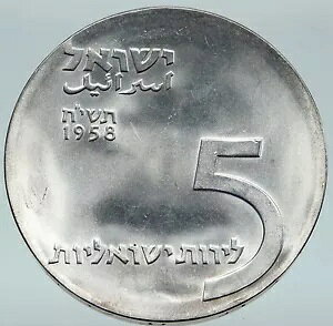 Israel 1st Coin 1958 Menorah BU Coin 25g Silver, 5 Lirot, Off Quality商品について販売者のコメント「品質外、へこみや傷のあるコイン。受け取るコインは写真と同じものです...