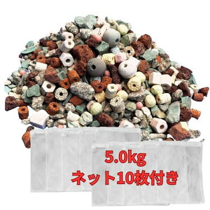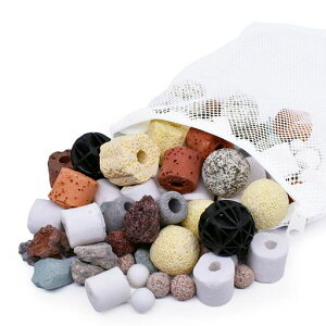 水槽用ろ過材 【プレミアム配合の高コスパ設計】浄水培養リング・バクテリアリング・火山石・麦飯石・珊瑚骨など、15種類の高性能ろ過材を厳選配合。ろ過力の向上を目指し、形状や機能の異なる素材を緻密に構成しました...