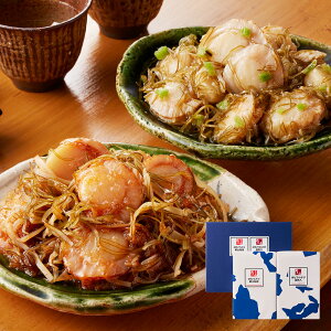 に、昆布やいか、ほたてをじっくりと漬込んだ松前漬けと、国産のほたてに昆布と茎わさびを加えタレにじっくりと漬込んだほたてわさびのセットです。2種類の旨味をお楽しみいただけます。 保存方法:冷凍<b...