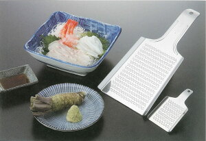 ステンレスわさびおろしサメ吉 ミニ大(062113)05-0167-0202 ●わさび生産農家様からも定評のある、わさびおろしの「サメ吉」です。 ●山芋、にんにく、生姜、ゆず等のき...