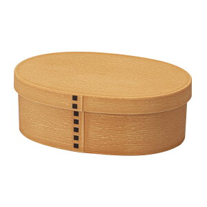 自然の木を使用した、曲げわっぱ弁当箱です。木の木目を生かしたナチュラル仕上げ。木の温かなぬくもりを感じる木製ランチボックスです。シンプルなデザインのお弁当箱は、毎日のランチから行楽のピクニックまでさまざまな場所で活躍