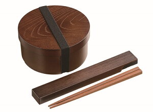 商品内容シックで高級感がありながら、お手入れしやすい樹脂製の曲げわっぱ風お弁当箱と箸ケース、天然木の箸のセット。女性におすすめのかわいい丸型、仕事カバンに