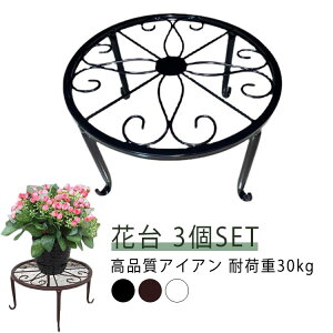 高品質アイアン 耐荷重30kg 花台 3個SET室内に使っても屋外に使ってもアンティーク感やジャンクな風合いを演出します。長時間置いても床に傷付きにくいタイプで、日陰から日なたへのなどの移動もラクです...
