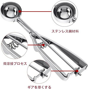 【カラー】シルバー材質:ステンレス鋼【この商品について】【素材】高級ステンレス鋼製、磨き、品質保証、スプリングデザイン、耐久性、厚みのある滑り止めハンドル、手触りの良さ、アイスクリームを楽しむための必需品、果物の掘り