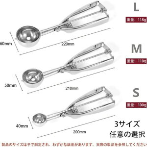 【素材】高級ステンレス鋼製、磨き、品質保証、スプリングデザイン、耐久性、厚みのある滑り止めハンドル、手触りの良さ、アイスクリームを楽しむための必需品、果物の掘り出しなどにも使用できます。 【仕様】3サイズのアイスクリー