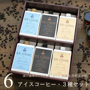 深川珈琲 石焼焙煎アイスコーヒー 1リットルパック 無糖 & 微糖 & 加糖 セット・6本(各2本)