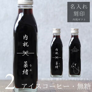 【商品名】 【命名 名入れ 内祝い ギフト】猫カフェ 猫イラスト 入り アイスコーヒー 無糖 200ml ビン 2本(ネコデザインボトル) 名入れ 刻印入り コーヒーギフト 瓶 名前入り 彫刻 猫好き...