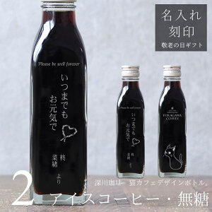 【商品名】 石焼焙煎アイスコーヒー 無糖 200mlビン・2本(猫カフェデザインボトル)(敬老の日ギフト・名入れ刻印入り) 【商品説明】 敬老の日ギフト 「いつまでもお元気で」メッセージ刻印入り & 送り主の名入れ刻印入り...