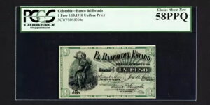 COLOMBIA UNIFACE ERROR PRINTING Banknote P-S504e , 1910 , 1 Peso , PCGS 58 PPQ商品について販売者のメモ「状態 - スキャンをご覧ください」循環/非循環 非循...