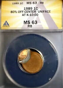 1989 ERROR ANACS MS63 OFF CENTER Lincoln Cent NICE CH BU Coin w/ UNIFACE REV. NR商品について出品者コメント「米国造幣局製、中心から外れた美しい正規品コイン...