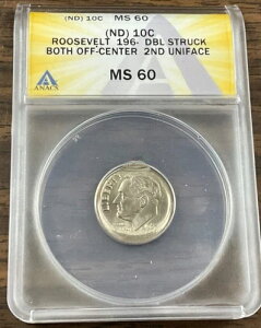 196- Roosevelt Dime Dbl Struck both Off-center & 2nd Uniface Error ANACS MS60.商品について販売者メモ「ANACS MS60」組成:銅・ニッケル認証番号:76...