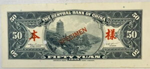 CHINA CENTRAL BANK 1945 SPECIMEN 50 YUAN UNIFACE RARE UNCIRCULATED商品について国:中国原産地:アジア注意事項※以下の注意事項をご理解のうえ、ご購入ください■ 鑑定済みコ...