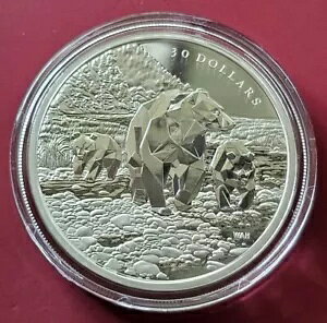 2023 $30 FINE SILVER COIN MULTIFACETED ANIMAL FAMILY: GRIZZLY BEARS商品についてコインカナダの野生動物構成シルバー2023 年ストライクタイププルーフ細かさ 0.999...