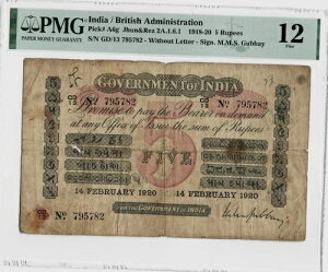 INDIA 5 Rupees P-A6G 1918-1920 Rare date Uniface Gubbay PMG12 Indian MONEY NOTE商品について出品者メモ「この画像は参考用です。実際の紙幣はシリアルナンバーが...