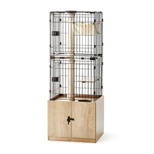 猫ちゃん用!タテに広々で快適な2段セット。 人気のコンビネーションサークルの新デザイン! 棚板が木目調、線材がマットになり、さらにお部屋に合わせやすいデザインに! ★お客様組立★ ●商品サイズ(cm) 幅約93