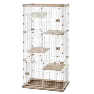 愛猫の飼育に適した3段タイプのケージです。お部屋にスッキリ置けるコンパクトサイズです。大きな扉でお掃除や物の出し入れがラクに行えます。猫がゆっくりくつろげる丈夫な木製棚板が付いています。掃除がしやすいフラットなトレーで