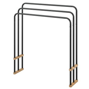 内容等予告なく変更する場合がございます。予めご了承ください。 お部屋に馴染む、シンプルなデザインのタオルハンガーです。マットな質感のスチールパイプと温かみのある天然木の組み合わ