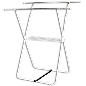 一度にたっぷり干せる。丈の長い衣類も干せる。タオル・小物ハンガー付き。高さ調節OK。使用しないときはコンパクトに収納が可能です。工具不要で簡単組立式、楽に組立ができます。