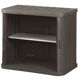 【商品説明】 落ち着いたブラウンカラーの小型収納庫です。軒下、勝手口の脇などに気軽に置けるサイズです。ガーデニング用品、掃除用品、ポリタンク等の収納に最適です。高さ調節可能なスチールの棚板が2枚付いており、左右どちら側