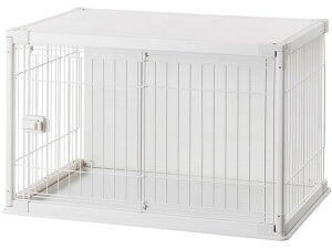 しつけや留守番時などに便利な屋根付きペットサークル ●屋根付きのペットサークルです。インテリアにも馴染みやすいシンプルなカラーです。開閉がスムーズなスライド扉で、開いたドアが邪魔になりません。屋根はメッシュになっていて